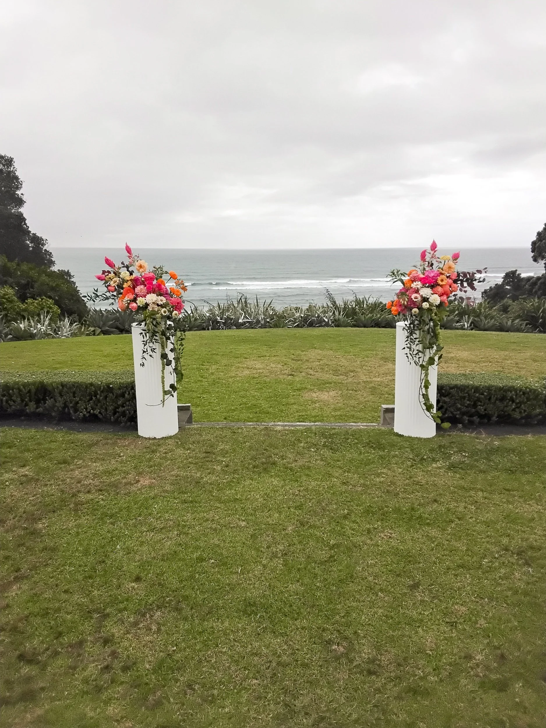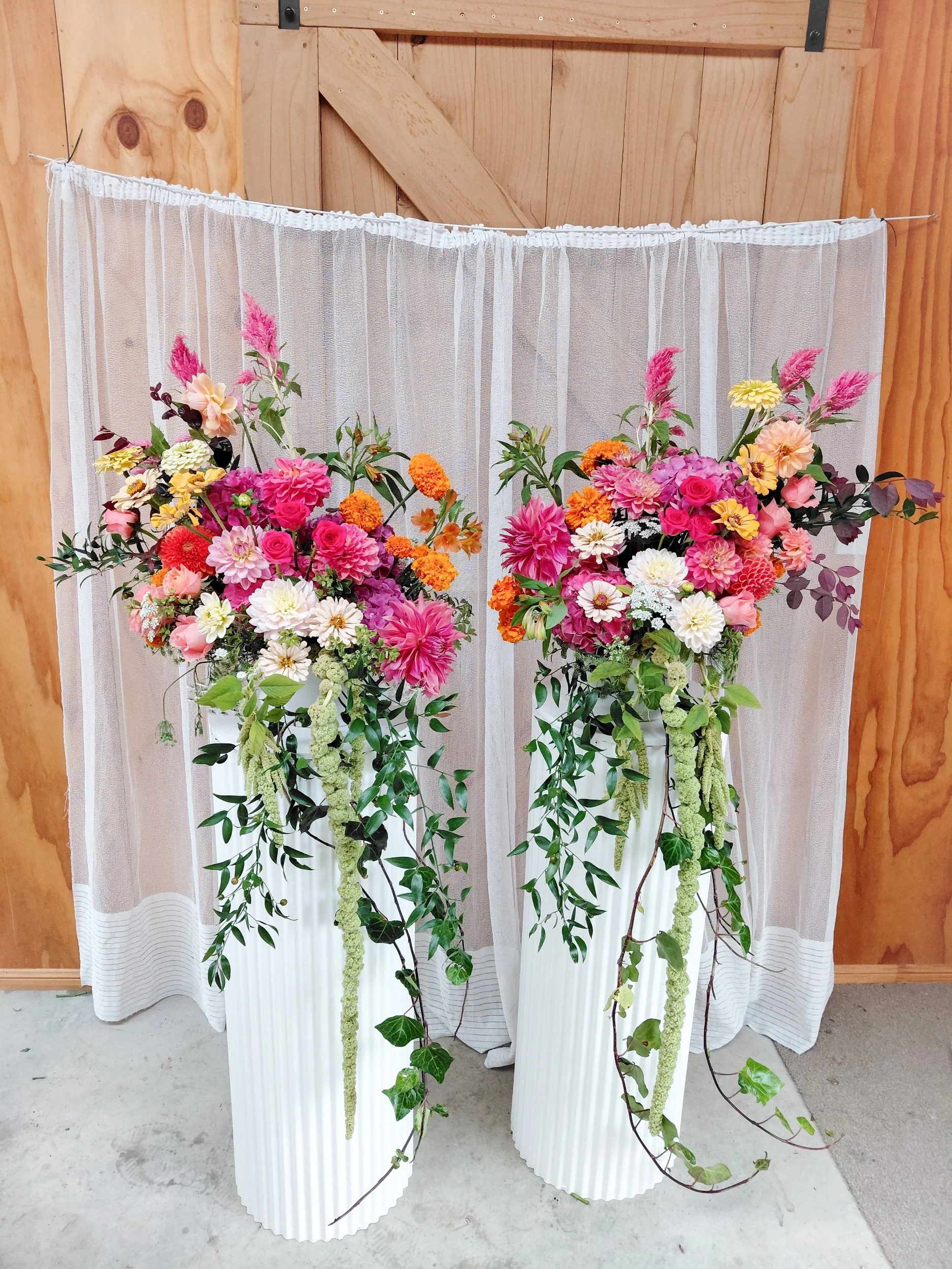 Ceremony florals (pedestals, meadow bases)